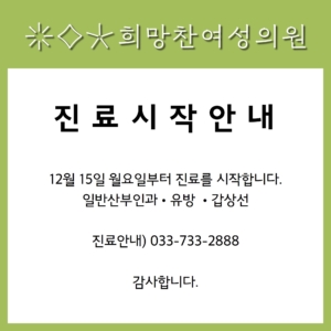12월 15일 월요일부터 진료를 시작합니다.
